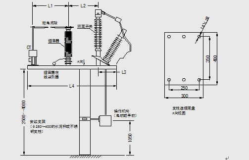 注意:此示意圖僅作為KWNP系列變壓器中性點間隙保護裝置的安裝參考,尺寸以實際產(chǎn)品尺寸為準。
