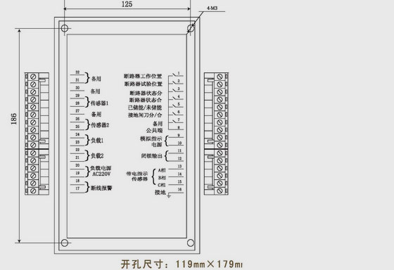 負(fù)載輸出繼電器觸點(diǎn)功率:AC220V/5A(帶阻性負(fù)載)。